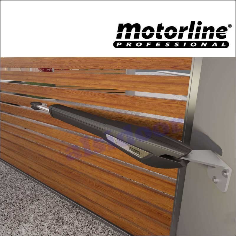 Kit motores abatibles para puerta batiente de dos hojas MOTORLINE TELICA230. Hasta 5 metros, 2.5m por hoja. Uso residencial. Motor adaptable a pilares